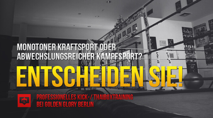 Seit 2010 können nun auch sportbegeisterte Berliner und Berlinerinnen auf das erstklassige Training dieses Kickbox-Teams zurückgreifen: Unter der Leitung des Golden Glory Fighters Andy Schadenberg, bieten wir in unserem Kampfsport-Studio in Berlin Prenzlauer Berg professionelle Trainings für Muay Thai bzw. Thaiboxen sowie Kickboxen an. Zusätzliches Kraft- Ausdauertraining in Form von Cross Fitness findet ebenfalls in unserem Gym statt.
